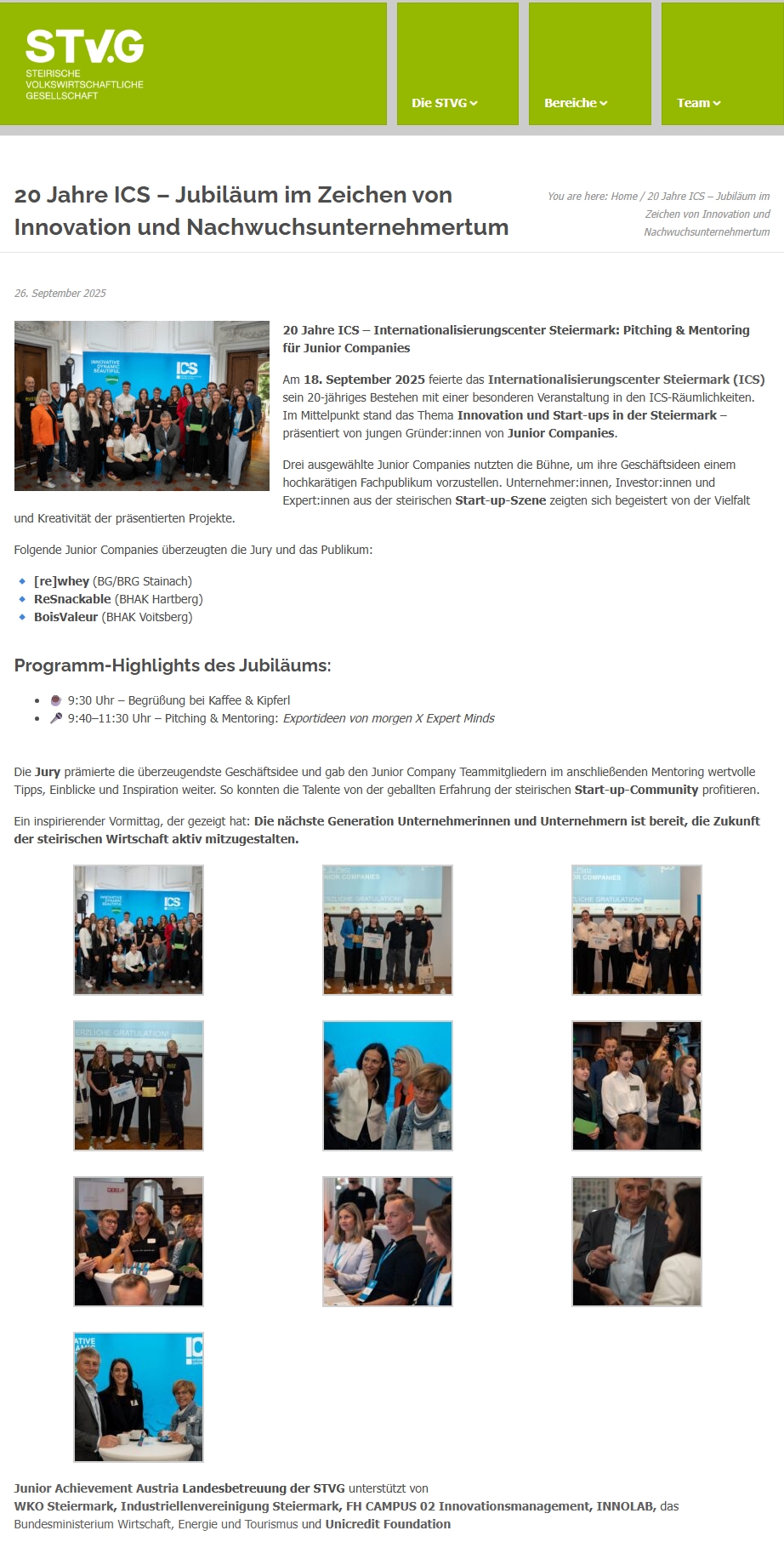 Den Vormittag des 18. Septembers 2025 widmete das Internationalisierungscenter Steiermark (ICS) gänzlich den Nachwuchsexporteur:innen & damit unseren jüngsten steirischen Unternehmer:innen: Anlässlich des 20-jährigen Bestehens des ICS präsentierten drei Junior Companies ihre innovativen Geschäftsideen beim Pitching & Mentoring Event.