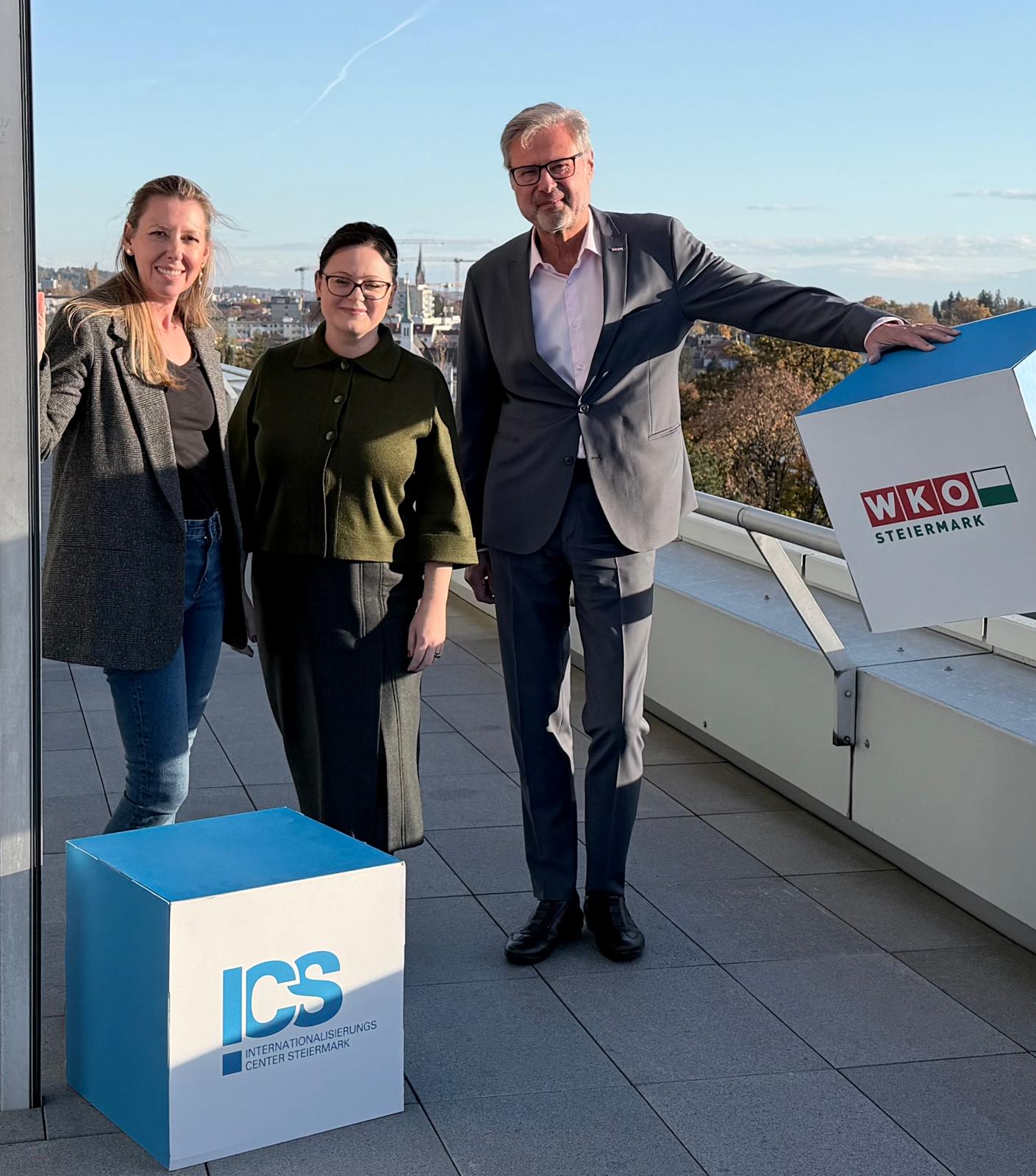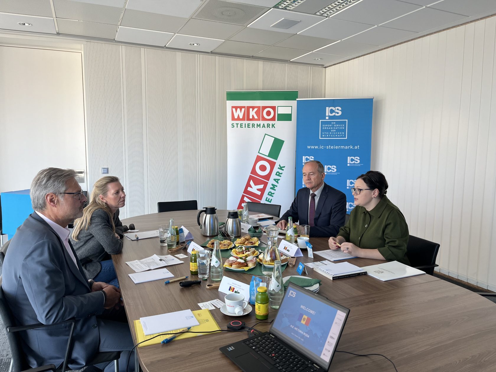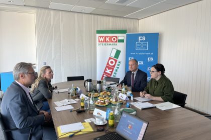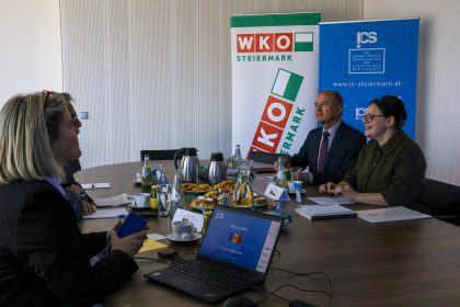 Gemeinsam mit Direktor Karl-Heinz Dernoscheg sowie Vertreter:innen des Internationalisierungscenter Steiermark (ICS), Daniela Guss und Sandra Tanos, fand ein äußerst anregender und informativer Austausch statt. Im Mittelpunkt standen Einblicke in die steirische Außenwirtschaft, die Aktivitäten der WKO Steiermark und des ICS sowie Gespräche über wirtschaftliche Entwicklungen, Kooperationsmöglichkeiten und Perspektiven zur weiteren Vertiefung der bilateralen Beziehungen zwischen der Steiermark und der Republik Moldau.