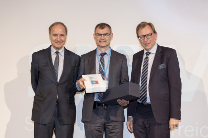 Seit über 110 Jahren ist der Standort Weiz der Siemens Aktiengesellschaft Österreich – untrennbar mit Produkten für die elektrische Energieerzeugung und -verteilung verbunden. Als Schlüsselprodukt werden Leistungs- und Verteiltransformatoren mit höchster Entwicklungskompetenz konstruiert und unter Einsatz modernster Qualitätsstandards gefertigt. Mit innovativer und neuester Technologie der Hochspannungstransformatoren von Siemens AG Österreich, Transformers Weiz wird elektrische Energie sicher und verlustarm übertragen. Klimaschutz ist ein integraler Bestandteil der Umweltpolitik des Unternehmens. Für Siemens AG Österreich, Transformers Weiz nahm Head of Sales, Hr. DI Josef Puntigam die steirische Export-Auszeichnung freudestrahlend entgegen.