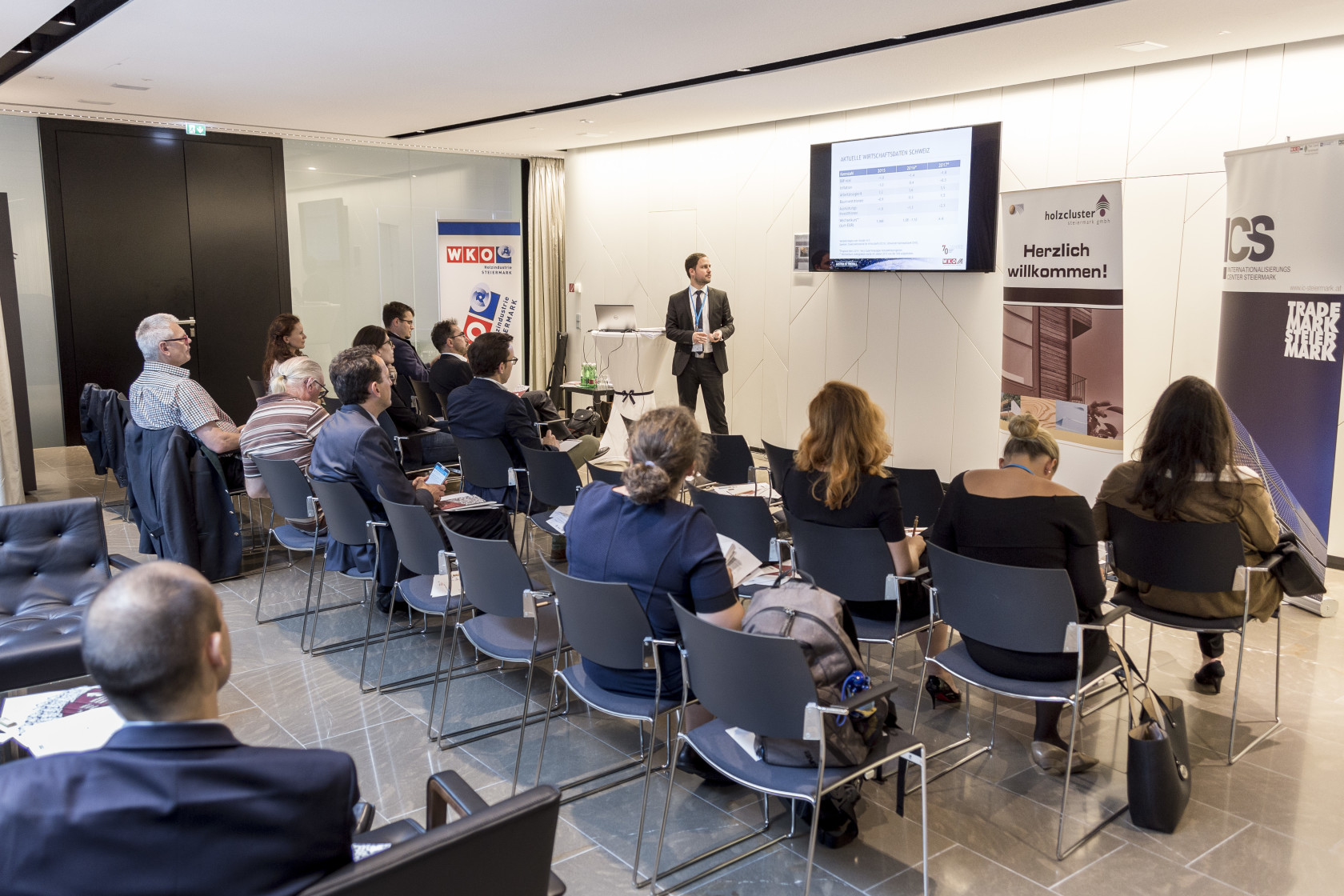 Obgleich die Baukonjunktur in der Schweiz seit 2015 schwächelt, stieg der Holzendverbrauch bei unseren Nachbarn im letzten Jahr signifikant an. Besonders bei den Mehrfamilienhäusern, im Neubau wie auch in der Sanierung konnte der Holzeinsatz in den letzten Jahren stark zulegen. Insgesamt ist die Akzeptanz der Holzbauweise innerhalb der Schweiz gewachsen und die Branche konnte dadurch nicht nur Innovationen etablieren, sondern vor allem auch neue Marktanteile erschließen. Sowohl Bauindustrie als auch Baugewerbe inklusive energieeffizienter Gebäudetechnik bieten somit hohes Exportpotential für steirische Holzunternehmen. Dies nahm der Holzcluster zum Anlass, um am diesjährigen Steirischen EXPORTTAG einen Workshop zum oa Themenschwerpunkt anzubieten.