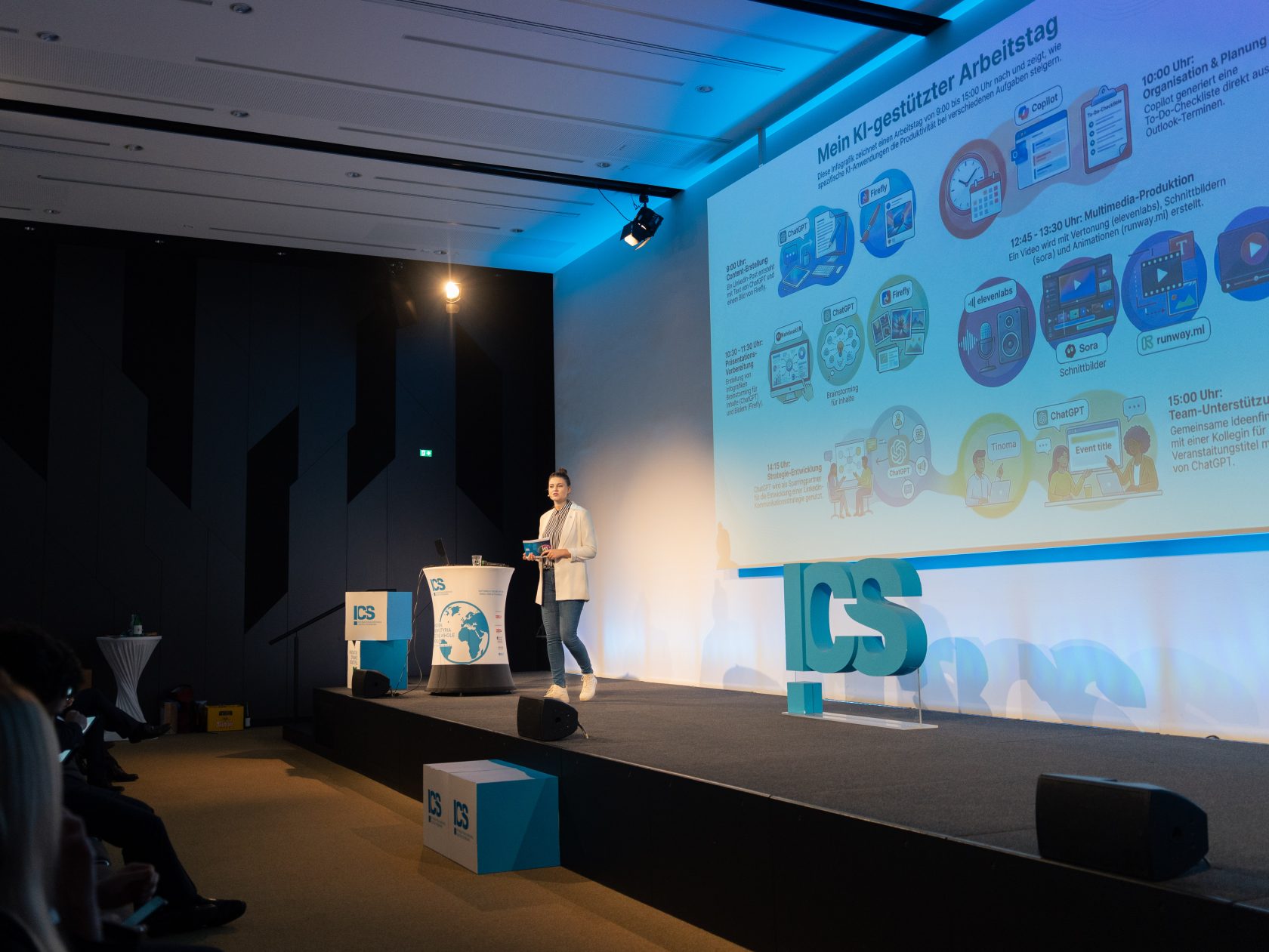 Den Auftakt gestaltete ICS-KI-Expertin & Moderatorin des Summits Iris Edler-Stiegler mit ihrem Impuls „AI-mazing Workflow“. Ihre zentrale These: Generative KI kann Marketing- und Strategieprozesse dramatisch beschleunigen – vorausgesetzt, kritisches Denken und menschliche Kontrolle bleiben fest verankert. KI sei ein „freundlicher Helfer“, niemals jedoch ein Ersatz für unternehmerische Verantwortung. Diese Maxime zog sich durch den gesamten Tag wie ein roter Faden.