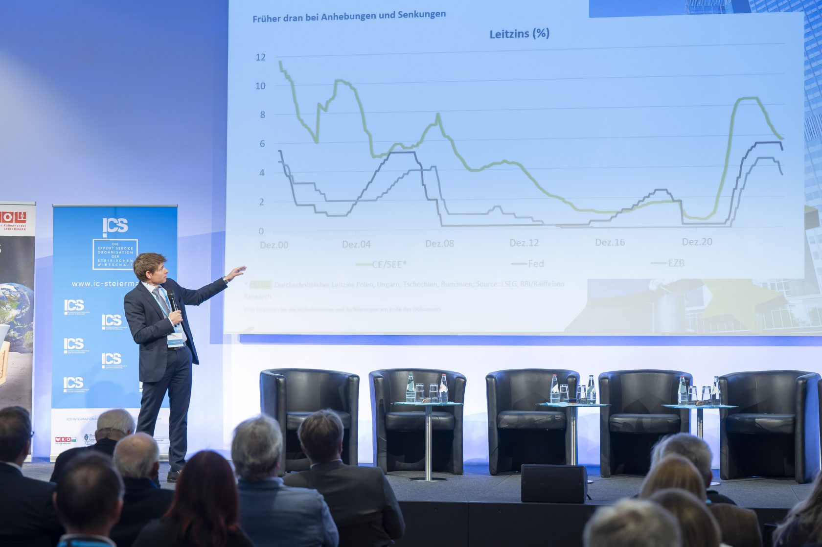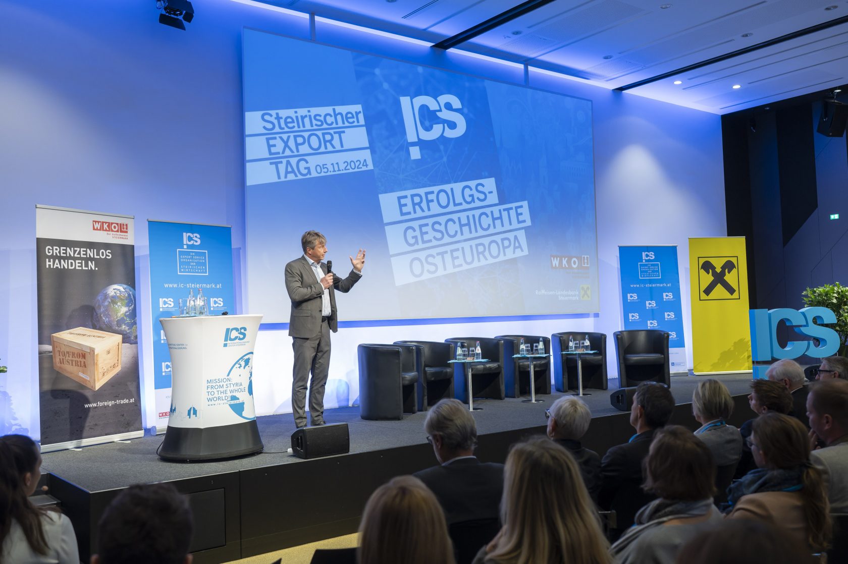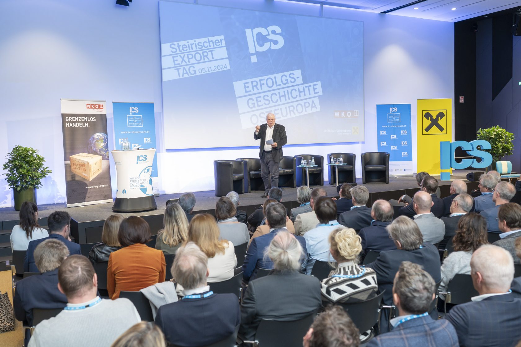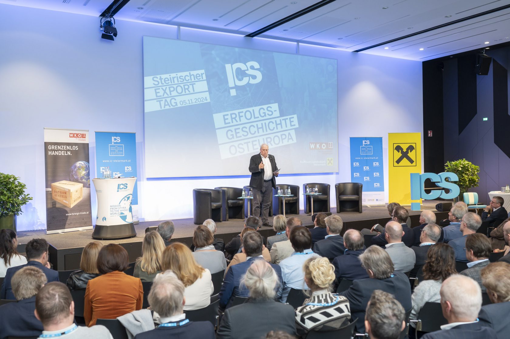 Der Steirische EXPORTTAG 2024 stand im Zeichen der Entwicklung und Zukunft Osteuropas. Im Europasaal der Wirtschaftskammer Steiermark versammelten sich Unternehmer:innen, Expert:innen und Wirtschaftsdelegierte, um neue Ansätze für den Umgang mit geopolitischen Herausforderungen zu diskutieren und Geschäftschancen in der MOEL-Region (Mittel- und Osteuropa) auszuloten. Der Fokus lag auf der dynamischen Entwicklung und den potenziellen Zukunftsszenarien dieser Regionen, die als wirtschaftlich interessante, aber geopolitisch herausfordernde Partner für die steirische Wirtschaft gelten.