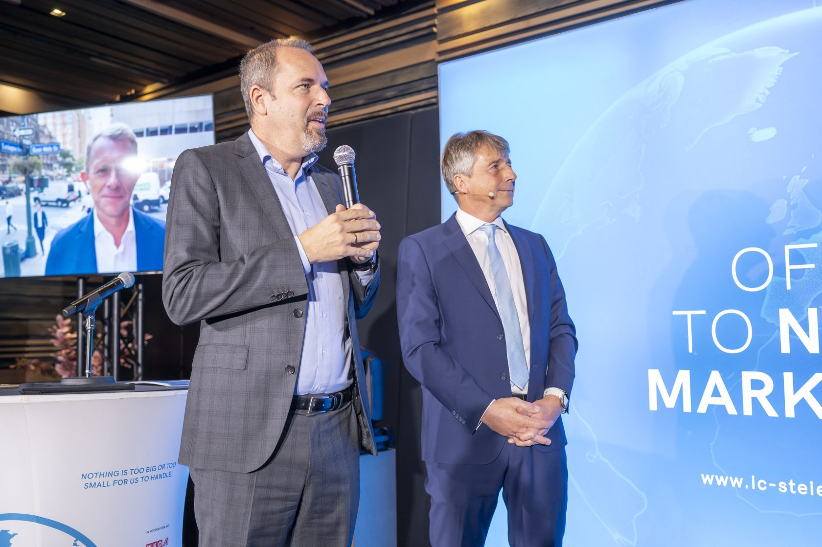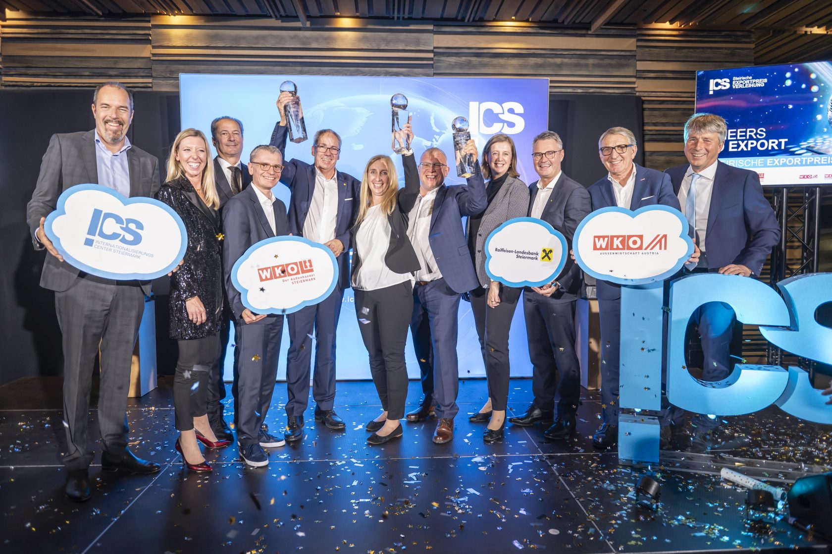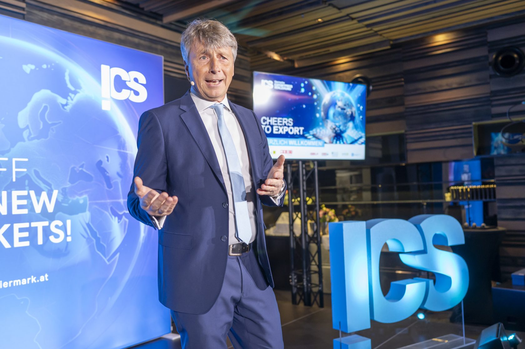 ICS-Geschäftsführer Karl Hartleb begrüßte gemeinsam mit Prokuristin Daniela Guß neben steirischen Top-Unternehmer:innen und ehemaligen Exportpreissieger:innen weitere namhafte Gäste, darunter Wirtschaftslandesrätin Barbara Eibinger-Miedl, WKO-Steiermark Präsident Josef Herk, IV-Steiermark Präsident Kurt Maier, ICS-Aufsichtsratsvorsitzender Jürgen Roth, ORF-Korrespondent Christian Wehrschütz, Vorstandsdirektor der Raiffeisen-Landesbank Steiermark Rainer Stelzer und Christoph Kovacic, Obmann-Stellvertreter des Landesgremiums des Außenhandel der WKO Steiermark.
