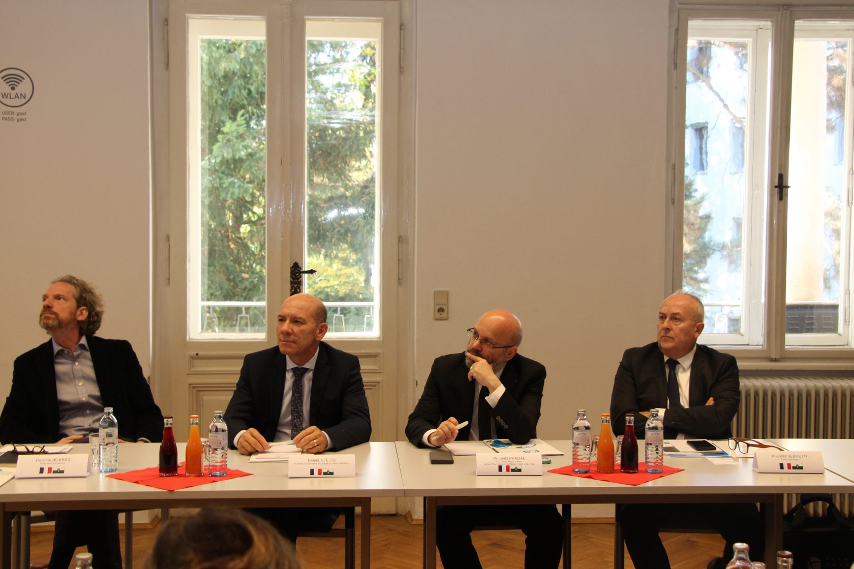 Zu den Teilnehmern der Delegation zählten der Vize-Präsident der Wirtschafts- und Industriekammer Daniel SFECCI, der Berater des Präsidenten von Team Côte d’Azur Pierre-Alain REVELAT, der Generaldirektor von Team Côte d’Azur Philippe SERVETTI sowie der Leiter von Francophonia Yann LIBRATI.