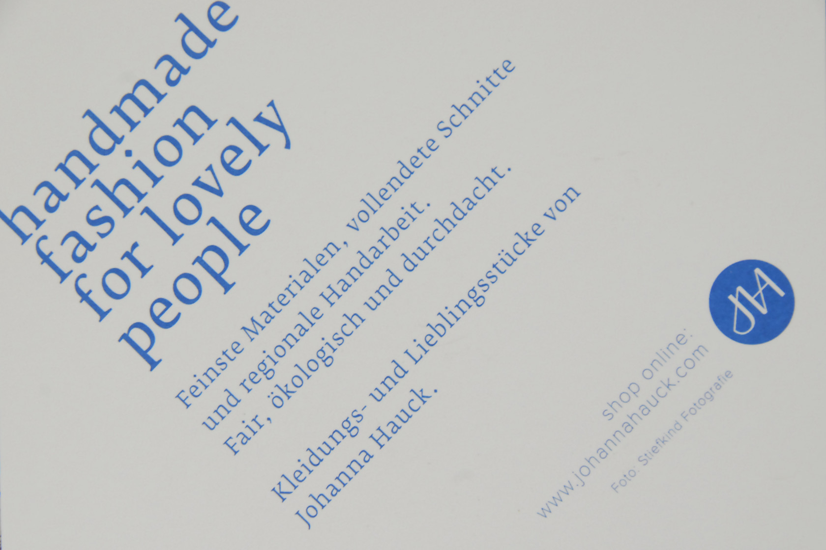 Das Label JOHANNA HAUCK wurde im Jahr 2013 in Graz gegründet, und hat sich feinster „Bio-Mode“ fernab jeglicher Öko-Klischees verschrieben. Alle Produkte werden in Österreich designt und produziert, da es für die Designerin höchste Priorität hat, dass alle verwendeten Stoffe und Materialien natürlich und hochwertig sind. Deshalb legt sie auch sehr großen Wert auf nachhaltige und lokale Herstellung. Johanna Hauck versucht so regional und biologisch wie nur möglich zu produzieren um ihren Kunden höchste Qualität garantieren zu können. Jedes Produkt wird direkt in Ihrem Atelier von Hand gemacht oder von lokalen Firmen und Handwerkern manufakturiert.