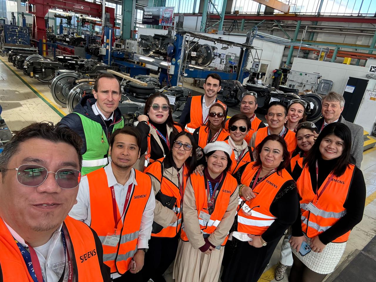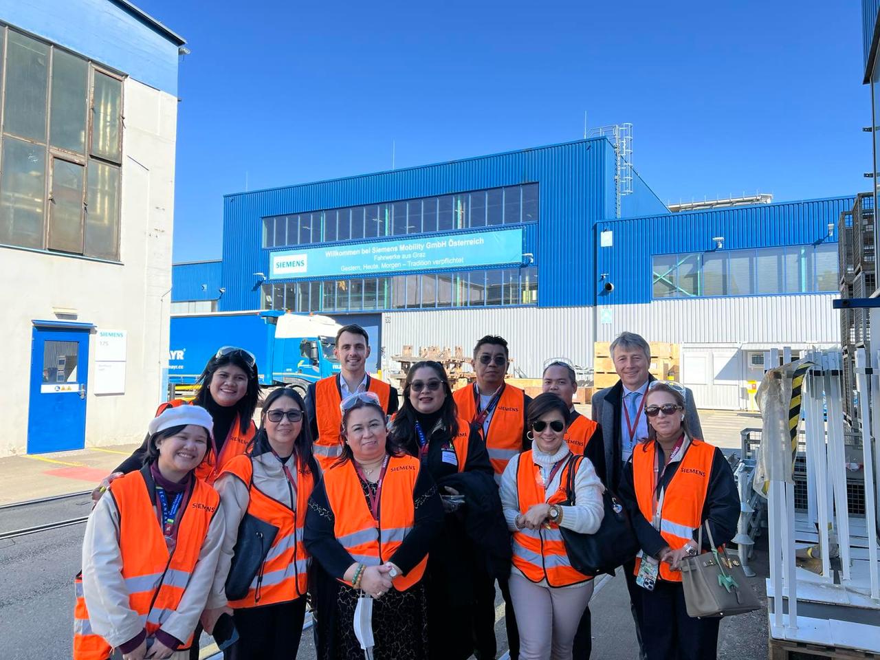 Im Anschluss an die Veranstaltung erhielt die philippinische Delegation die besondere Gelegenheit, das Werk von Siemens Mobility in Graz zu besichtigen. Thomas Penz führte die Gruppe mit großem Engagement und Fachwissen durch das beeindruckende Werk und gab spannende Einblicke in die verschiedenen Produktionsschritte von der Fertigung erster Prototypen bis hin zur Lackierung einzelner Zugkomponenten.