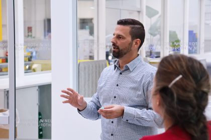 Bei Neuroth wurde uns der maßgeschneiderte Produktionsprozess für jährlich rund 220.000 Hörstücke vorgestellt. Die Neuroth-Gruppe hat sich seit der Gründung 1907, vom traditionsreichen Familienbetrieb, zum führenden Hörakustikunternehmen entwickelt. Neben dem DACH-Raum ist auch Südosteuropa ein wichtiger Markt, in dem sie mit dem Qualitätssiegel „Made in Austria“ in Slowenien bereits Marktführer sind. Slowenien ist nach Österreich und der Schweiz auch der drittgrößte Markt für Neuroth. Als Herausforderung in der Internationalisierung, ist die Regulierung der Märkte für medizintechnische Produkte. CFO Stefan Schönbeck, Cornelia Perus (Head of Brand & Creation) und Petra Lindschinger (Head of Operations) gaben den Teilnehmer:innen spannende Insights des Unternehmens.
