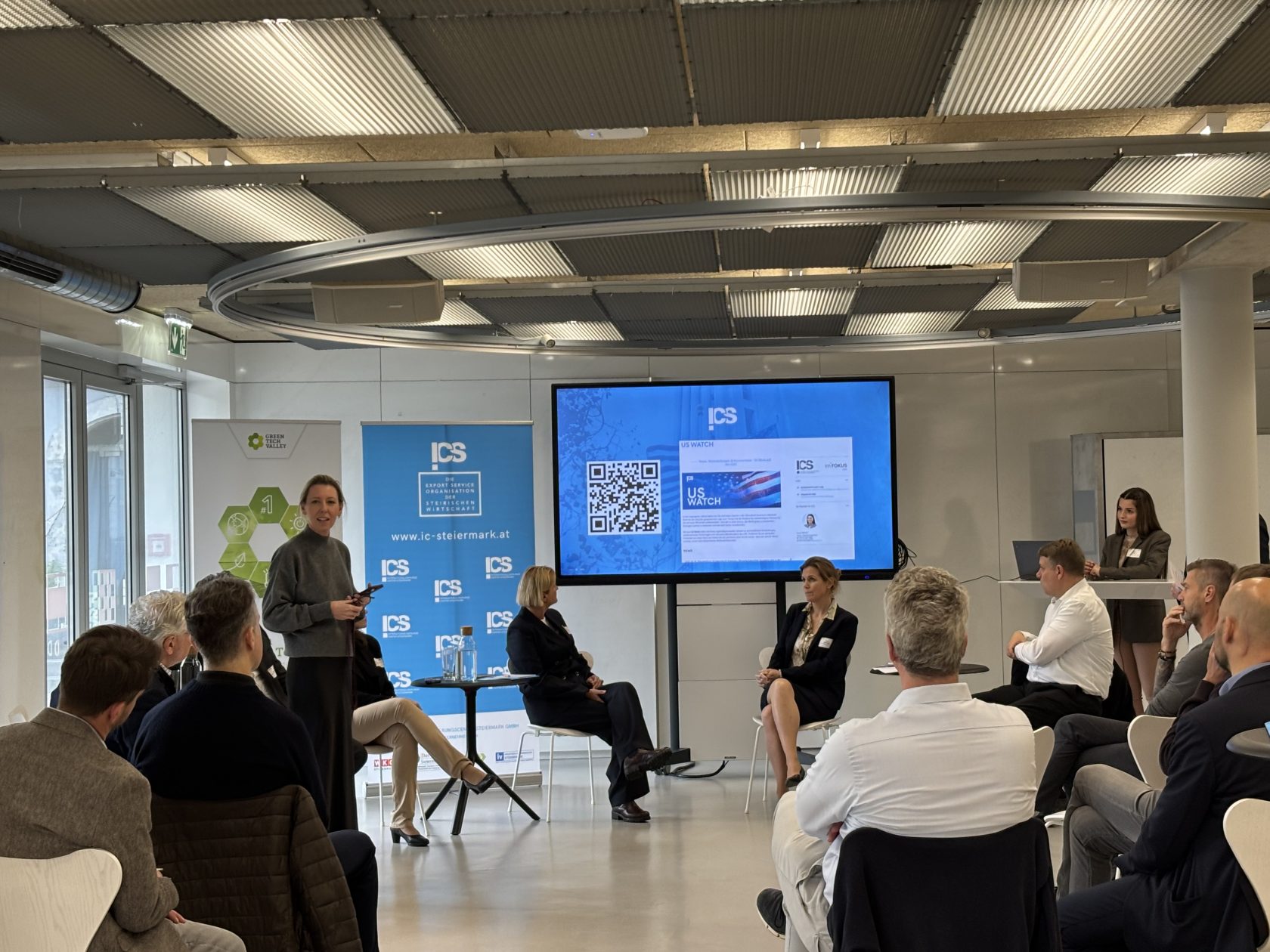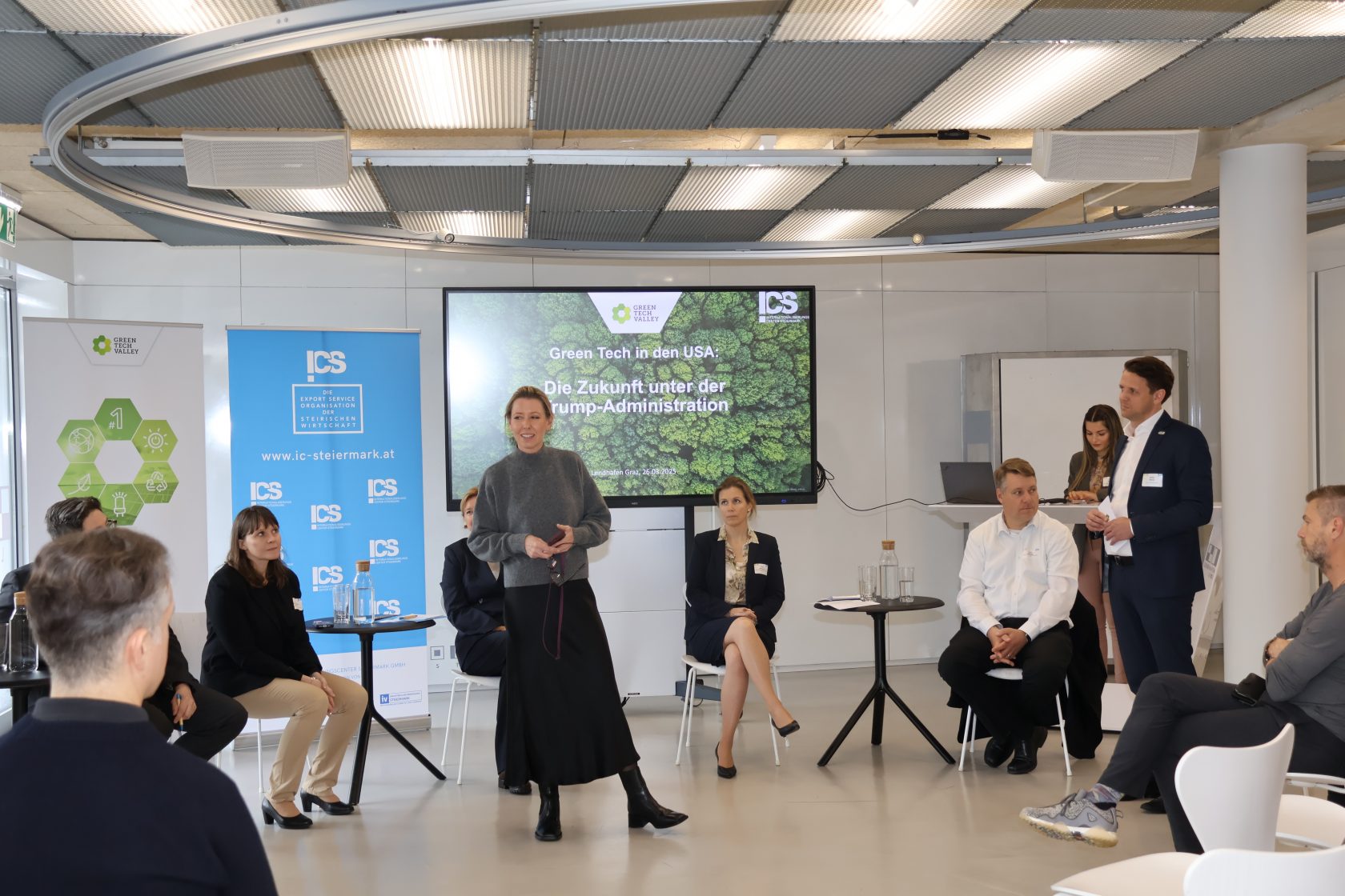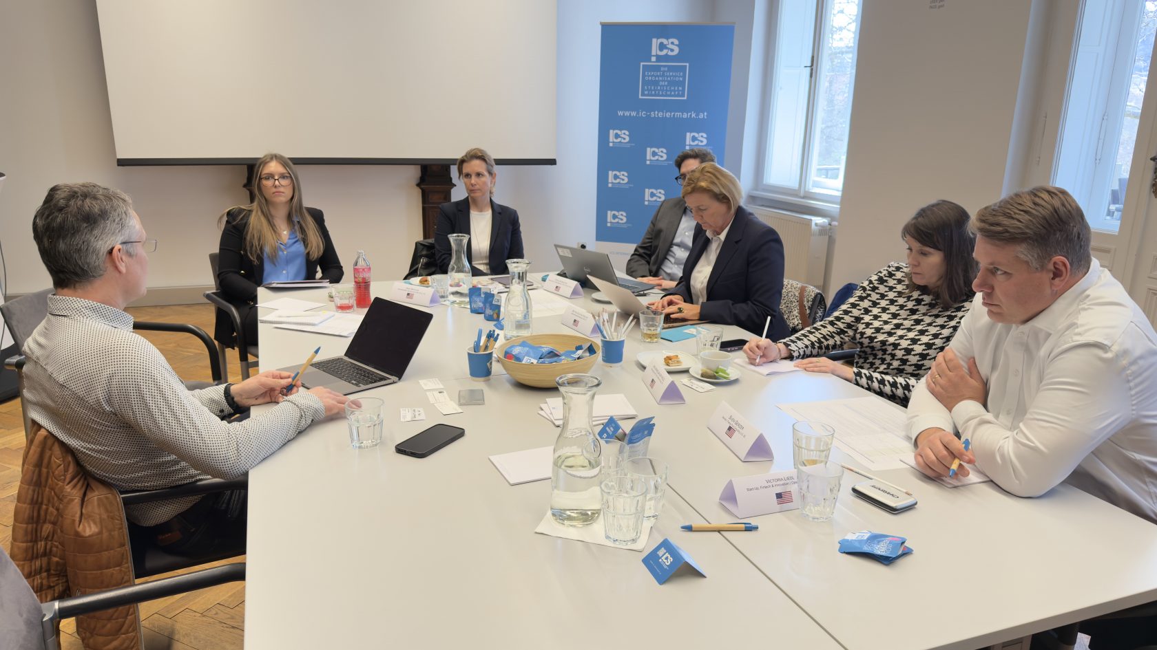 Am 25. und 26. März 2025 begrüßte das ICS sechs hochkarätige US-Expert:innen, die exklusive Einblicke in die wirtschaftliche Lage und praxisnahe Strategien für den Markteintritt in den USA vermittelten. Beim USA-Sprechtag nutzten Unternehmen die Gelegenheit, sich in persönlichen Beratungsgesprächen maßgeschneiderte Experten-Tipps zu sichern. Weiters standen die neuesten Entwicklungen der Green-Tech-Branche im Fokus.