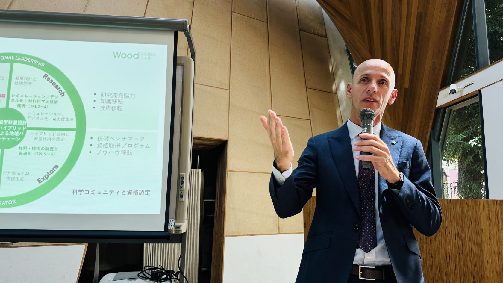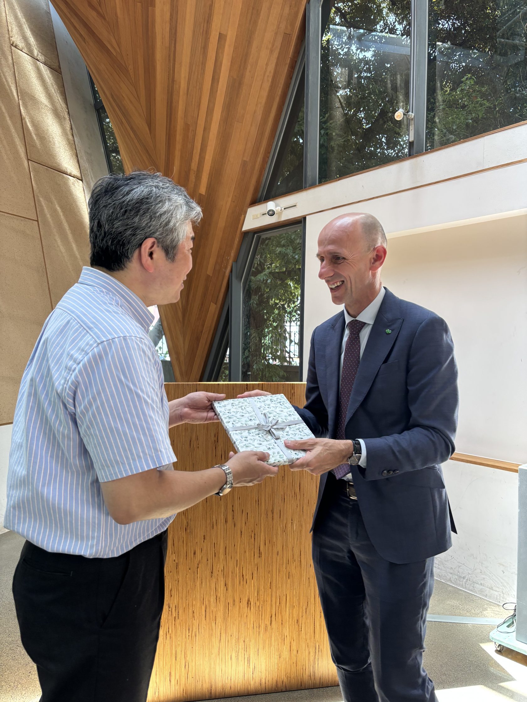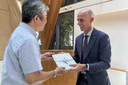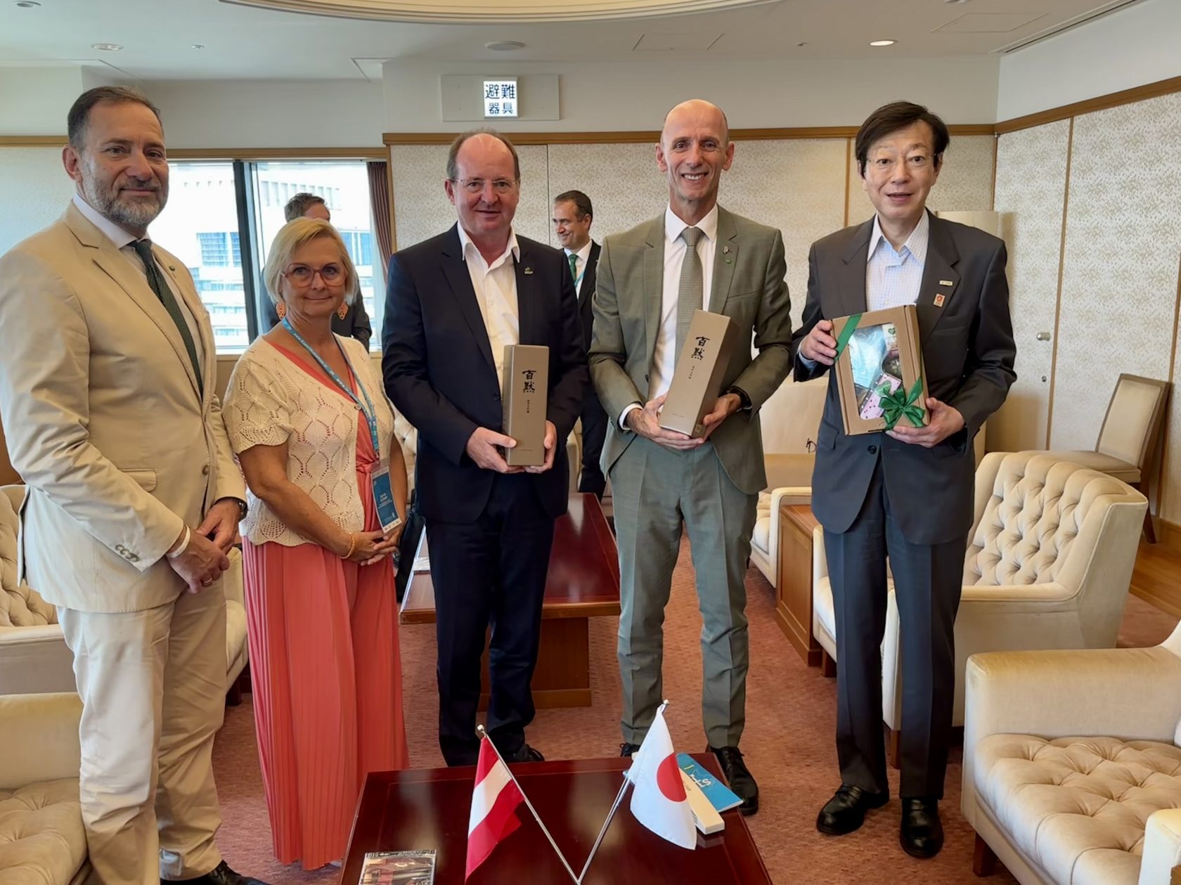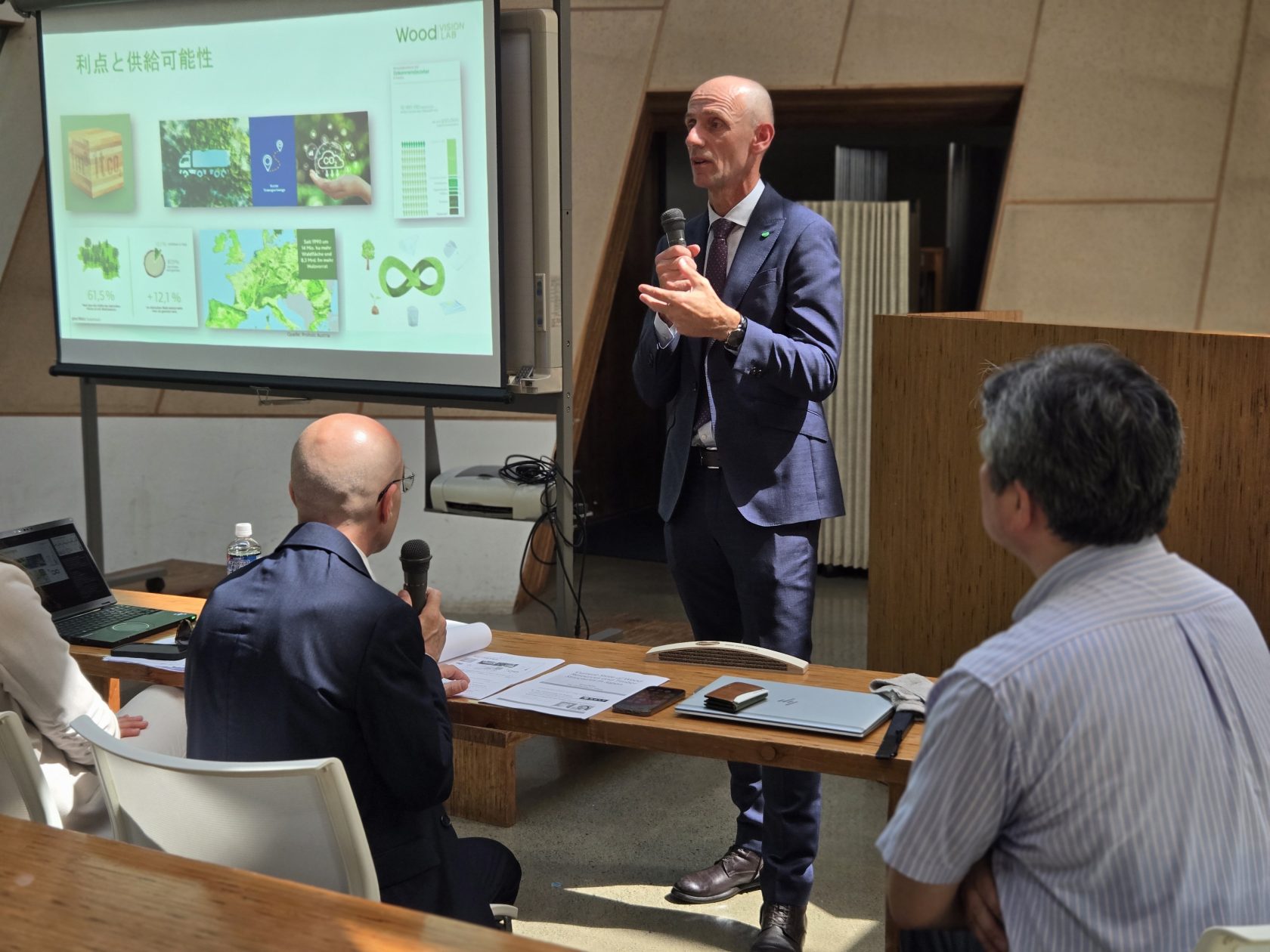 An der Universität Tokio tauschte sich die Delegation mit Prof. Kenji Aoki zu innovativen Einsatzmöglichkeiten von Holzwerkstoffen in Bau, Mobilität, Energie und Kreislaufwirtschaft aus. Besonderes Interesse zeigte Professor Aoki am steirischen Wood Vision Lab, das von Landesrat Willibald Ehrenhöfer präsentiert wurde – als eindrucksvolles Beispiel für die Verbindung von Materialinnovation, Forschungsexzellenz und Nachhaltigkeit aus der Steiermark.