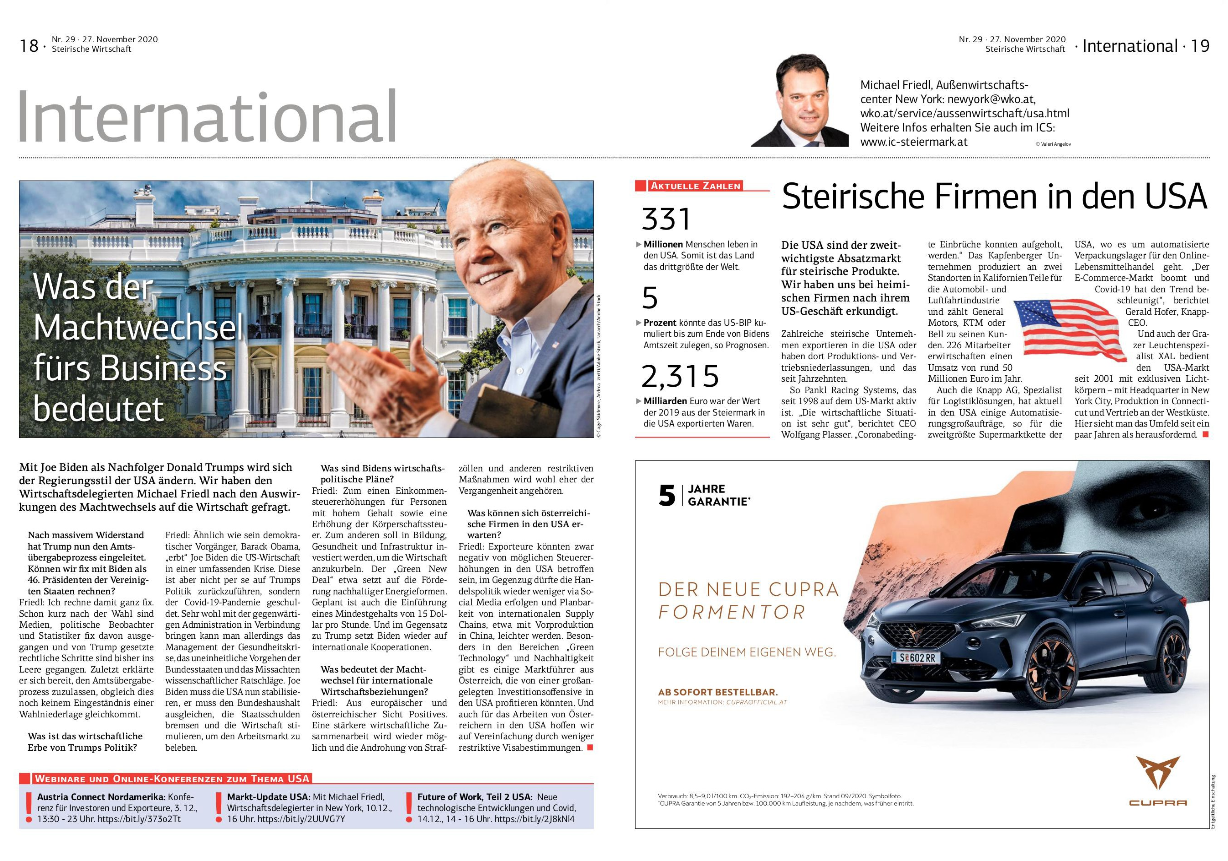 Die Unterstützung der Journalisten & Medienvertreter ist für uns, als Export Service Organisation der steirischen Wirtschaft, sehr wichtig und wir bedanken uns dafür herzlich.