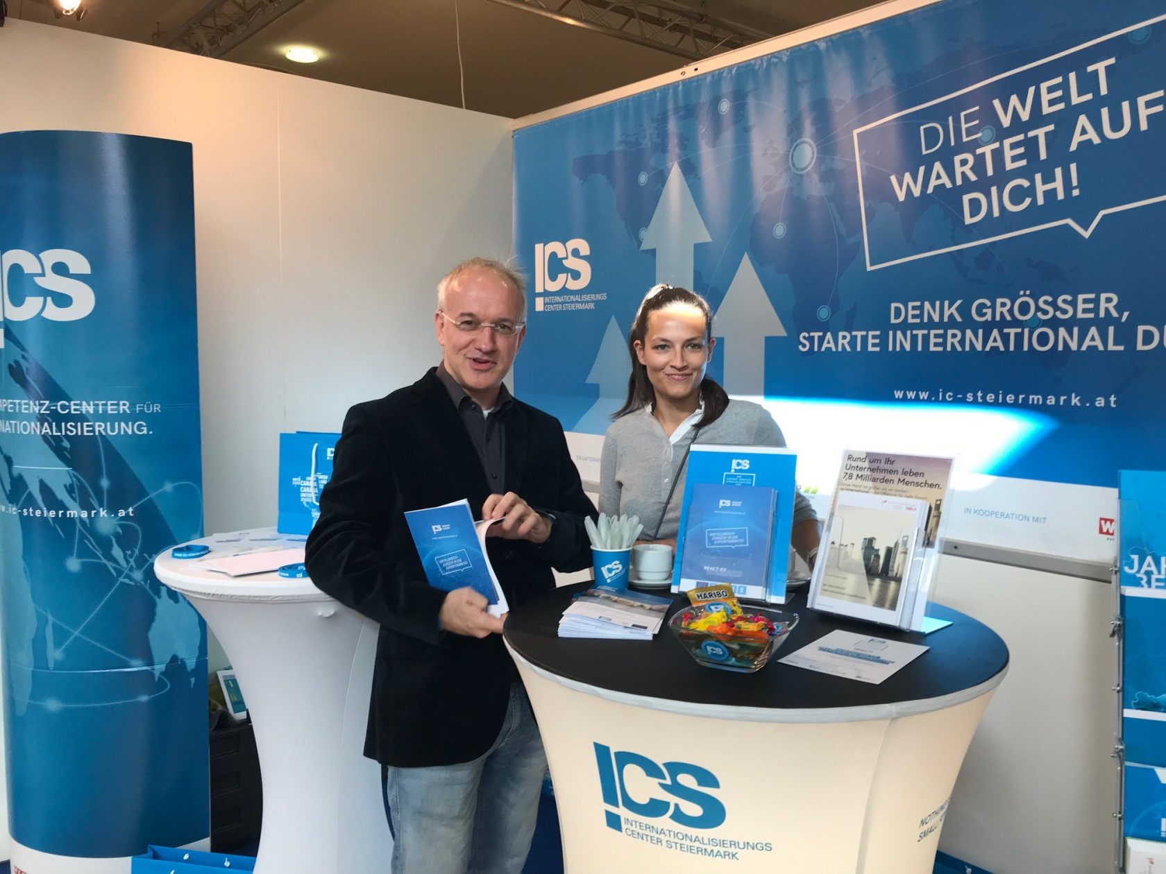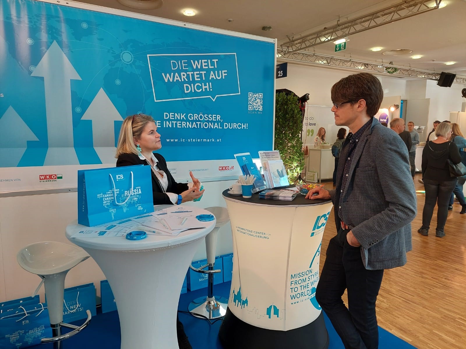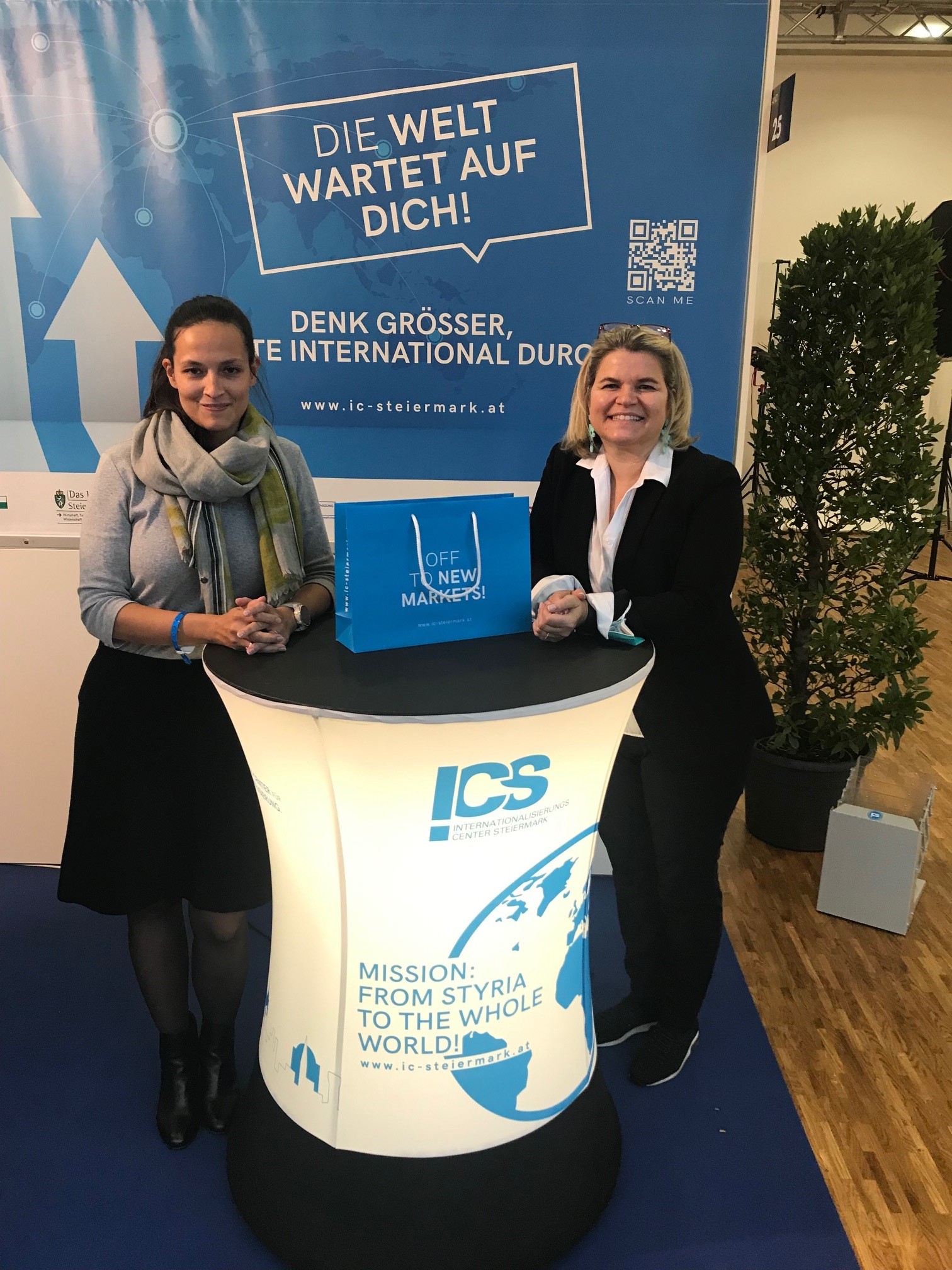 Mehr als 40 Teilnehmer profitierten vom persönlichen Austausch mit den Neoexporteurs-Expertinnen Lisa-Maria Katholnig und Sandra Tanos und erhielten auf diesem Wege (Erst-)informationen zu Exportförderungen, aktuellen EU-Projekten im ICS und sonstigen Serviceleistungen sowie zu aktuell geplanten Veranstaltungen. So wurde den zahlreichen Standbesuchern mit wertvollen Einblicken in die Exportwelt der Weg in ausländische Märkte schmackhaft gemacht!