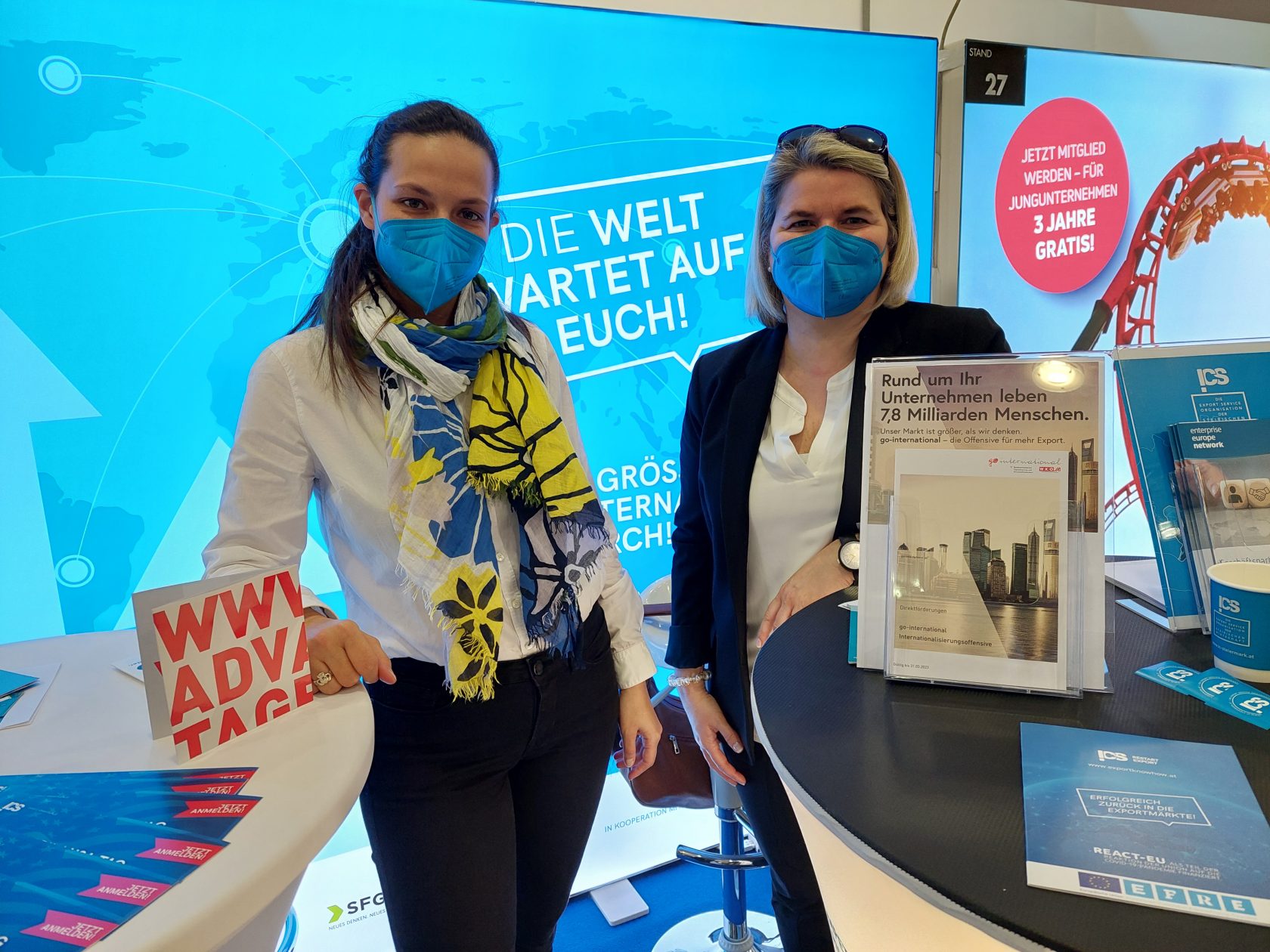 Rund 20 TeilnehmerInnen profitierten vom persönlichen Austausch mit den Neoexporteurs-Expertinnen Lisa-Maria Katholnig und Sandra Tanos und erhielten auf diesem Wege (Erst-)informationen zu Exportförderungen, aktuellen EU-Projekten im ICS und sonstigen Serviceleistungen sowie zu aktuell geplanten Veranstaltungen. Den StandbesucherInnen wurde so, mit wertvollen Einblicken in die Exportwelt, der Weg in ausländische Märkte schmackhaft gemacht!