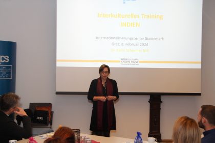 Wir, als ICS, werden auch zukünftig unser Engagement fortsetzen und weitere interkulturelle Trainings anbieten, um den Bedürfnissen der steirischen Unternehmen gerecht zu werden. Im Weiteren fühlen wir uns nunmehr bestens für die anstehende Wirtschaftsreise nach Bengaluru & Delhi von 09-16.03.2024 vorbereitet und freuen uns, diesen boomenden Wirtschaftsmarkt hautnah zu erleben.