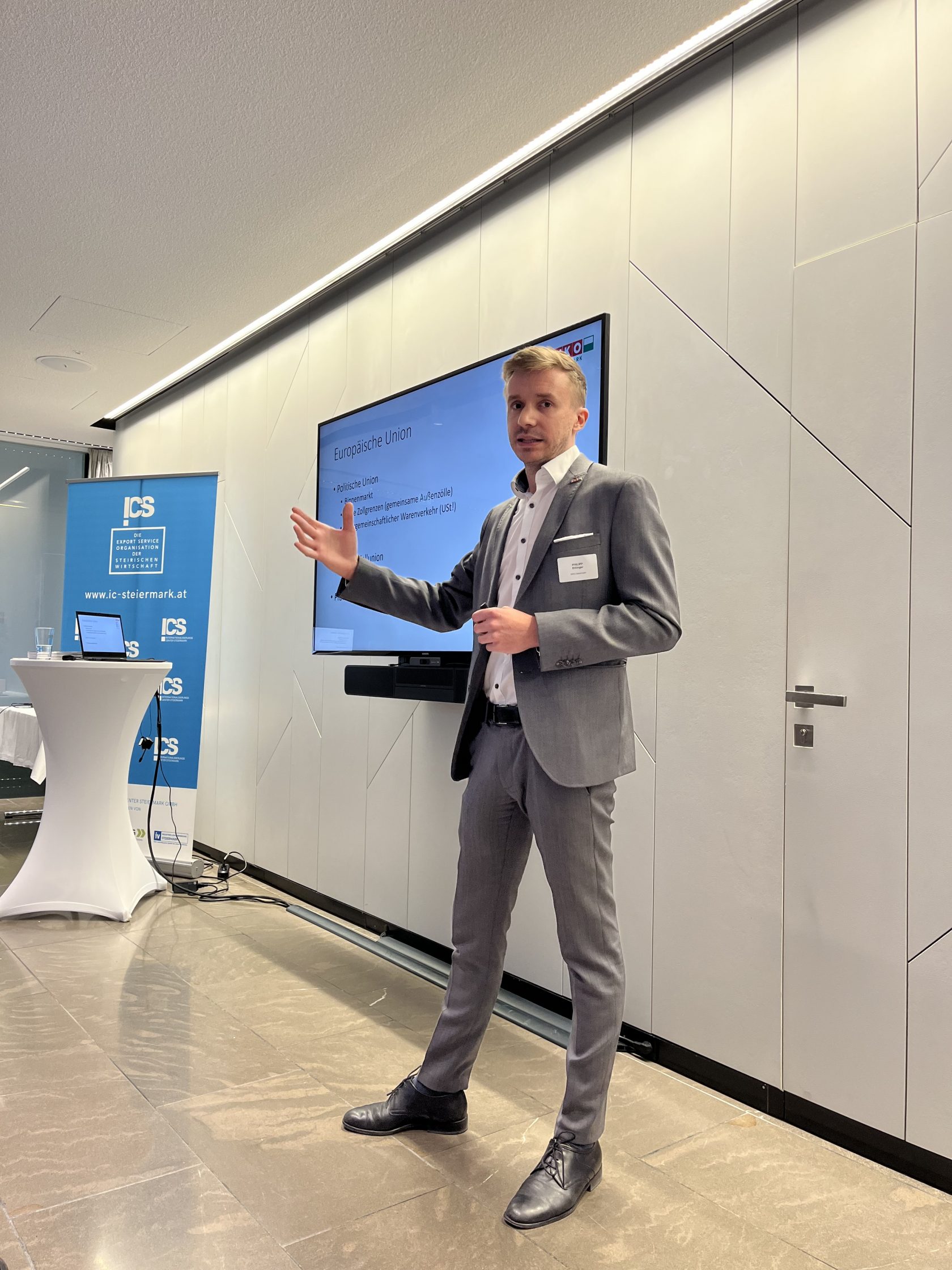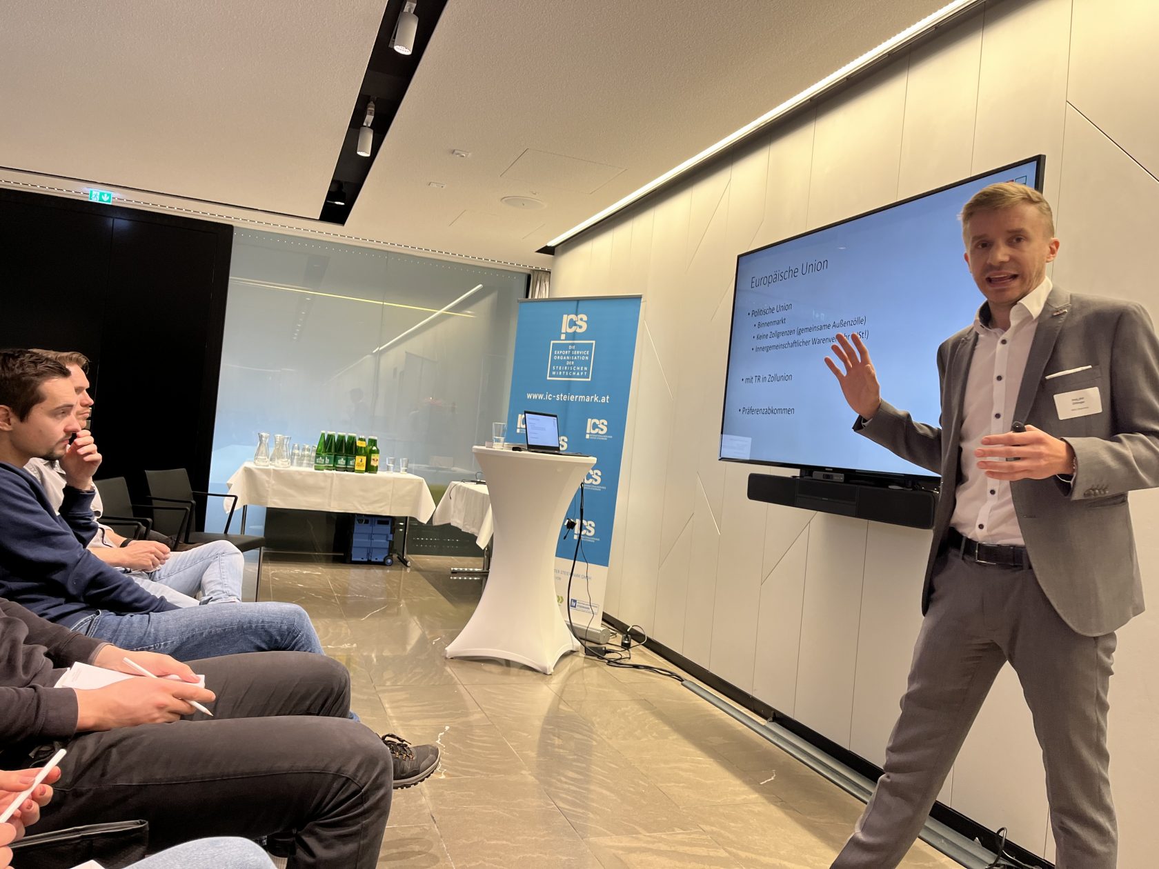 Antworten auf diese und viele weitere Fragen lieferte Philipp Dillinger, Experte für Zoll- und Steuerrecht der WKO Steiermark. Neben wertvollen Einblicken und Tipps zur optimalen Vorbereitung auf die Herausforderungen der Exportabwicklung wurden auch individuelle Fragen der Teilnehmer:innen beantwortet.
