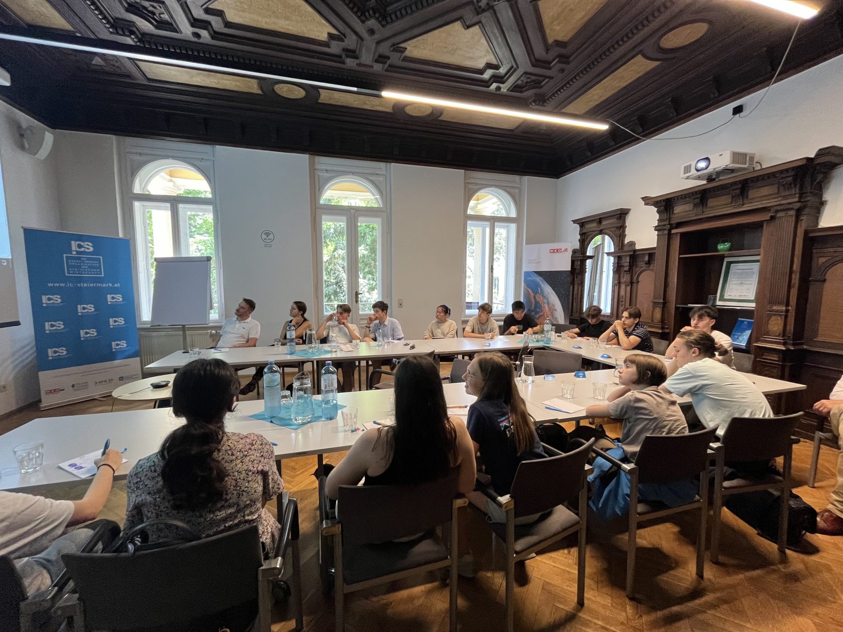Das war das Motto der Schüler:innen der 6. und 7. Klassen des Akademischen Gymnasium Graz, die am 19. Juni das ICS Internationalisierungscenter Steiermark besuchten, um Einblicke in unsere vielfältigen Tätigkeiten zu bekommen sowie zu erfahren, wie heimische Unternehmen beim Schritt ins Ausland unterstützt werden. Außerdem wurde den Jugendlichen auch die Bedeutung des Außenhandels für den Wirtschaftsstandort Steiermark erläutert und mit Zahlenmaterial eindrucksvoll untermauert.