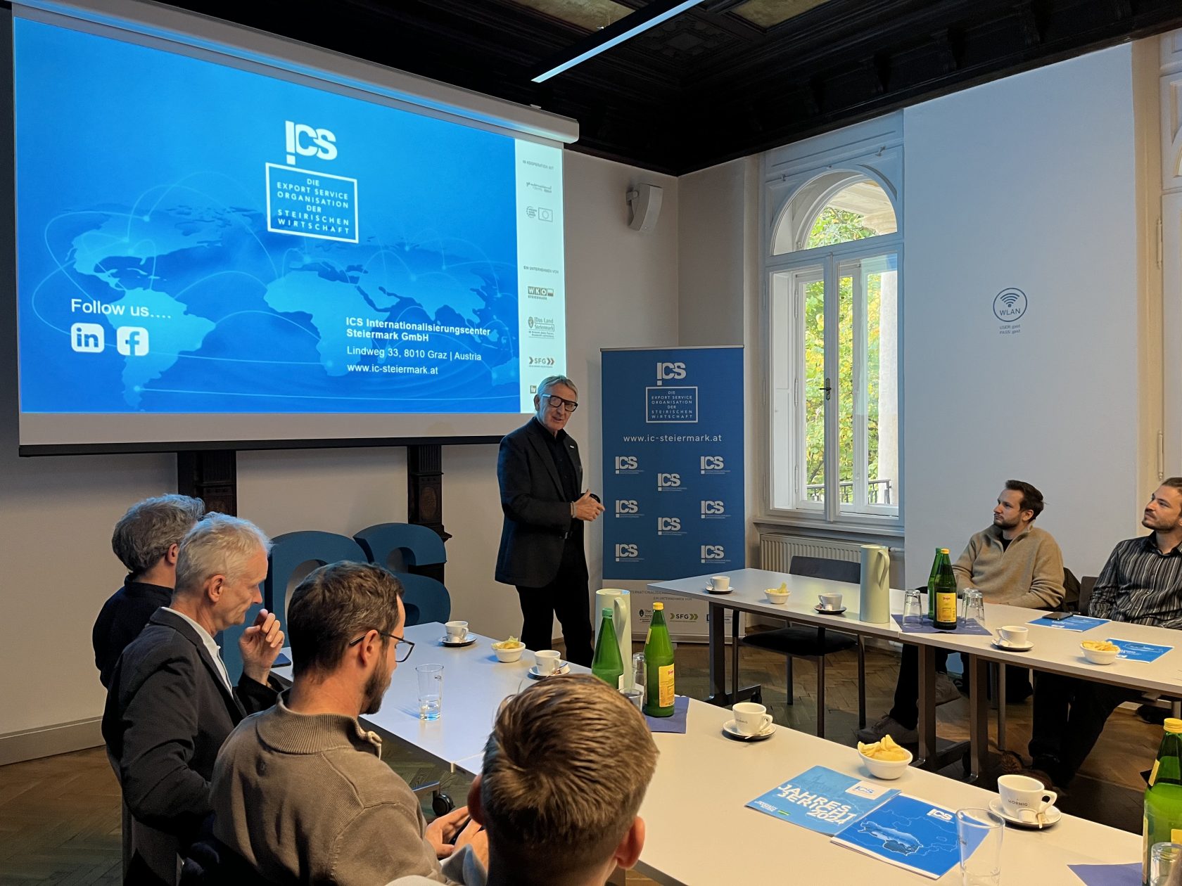 Unser Geschäftsführer Karl Hartleb eröffnete das Treffen mit einer Einführung in das ICS und gewährte spannende Einblicke in die aktuelle Lage der steirischen Außenwirtschaft, von den vielfältigen internationalen Chancen bis hin zu den Herausforderungen, denen Unternehmen derzeit auf globalen Märkten begegnen.