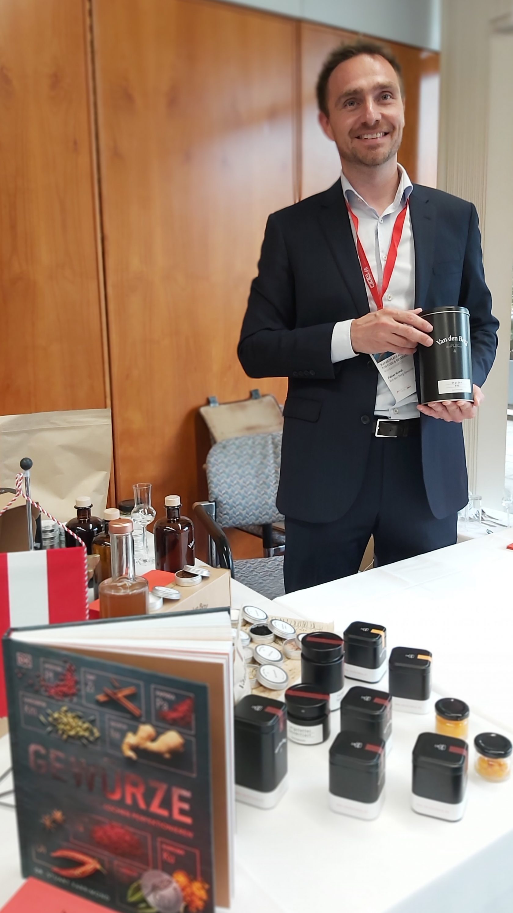 Fabian Kinkel von der Firma Van den Berg Gewürze & Spirituosen wurde 2023 über einen Newsletter der AUSSENWIRTSCHAFT AUSTRIA auf Exportmöglichkeiten aufmerksam und meldete sich daraufhin für den jährlich im Oktober stattfindenden B2B-Event des Enterprise Europe Network, den MARKETPLACE AUSTRIA FOR FOOD & BEVERAGES in Wien an. Dieser bietet den österreichischen Teilnehmer:innen die einzigartige Möglichkeit, im Rahmen von B2B-Meetings mit internationalen Einkäufer:innen großer Supermärkte sowie des Großhandels in Kontakt zu treten und ihnen ihre heimischen Produkte zu präsentieren.