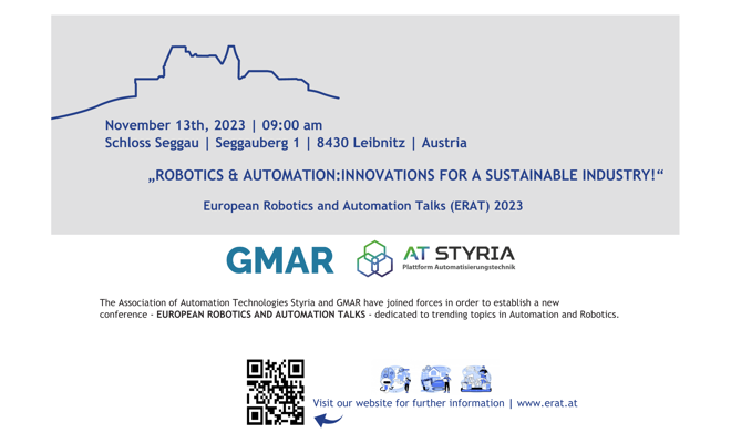 Am 13. und 14. November findet zum wiederholten Mal der englischsprachige Kongress ERAT – European Robotics and Automation Talks statt. Es werden ca. 120 Teilnehmer:innen (u.a. aus Kroatien, Slowenien, Slowakei, Italien, Schweiz, Deutschland und Österreich) aus unterschiedlichen Bereichen der Industrie und Wissenschaft erwartet.