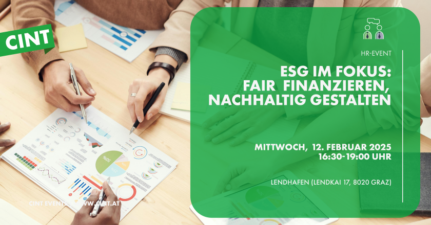Diversität und Gleichstellung sind nicht nur gesellschaftlich relevant, sondern sind zunehmend entscheidend für die finanzielle Zukunftsfähigkeit von Unternehmen. Wie können Unternehmen nachhaltig wirtschaften und dabei ökologische, soziale sowie ethische Verantwortung übernehmen? Welche Rolle spielt ESG für die langfristige Unternehmensstrategie und wie beeinflusst dies die Kreditvergabe? Das von CINT – Club International veranstaltete HR-Event “ESG im Fokus: Fair finanzieren, nachhaltig gestalten“ gibt Ihnen darüber Aufschluss: