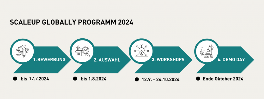 Die Bewerbung für die Teilnahme am Scaleup Globally Programm ist ab sofort möglich.Für Rückfragen können Sie uns gerne jederzeit unter aussenwirtschaft.scaleups@wko.at kontaktieren.