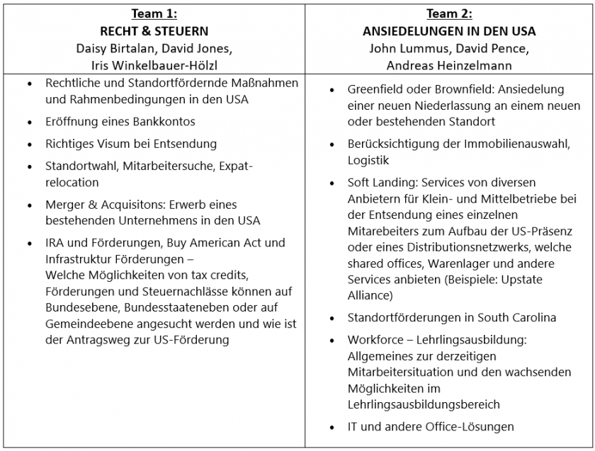 Unsere USA-Expert:innen beraten Sie persönlich in 45 Minuten-Slots zu Ihrem individuellen Vorhaben und Ihren Fragen rund um den Markteintritt in den USA.