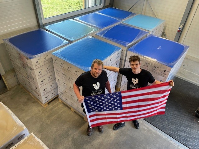 Nach drei Jahren intensiver Planung und Vorbereitung ist es schließlich soweit: Die Distillery Krauss findet Partner:innen für Logistik, Import und Distribution in den USA. Nach einem erfolgreichen Messeauftritt zeigen Handel und Gastronomie Interesse, und die erste Lieferung – bestehend aus Classic Gin, Organic Orange Liqueur, prämiertem Whiskey, Rum und Apple Brandy – macht sich auf den Weg nach Maryland. Zehn Paletten, die den US-Markt erobern.